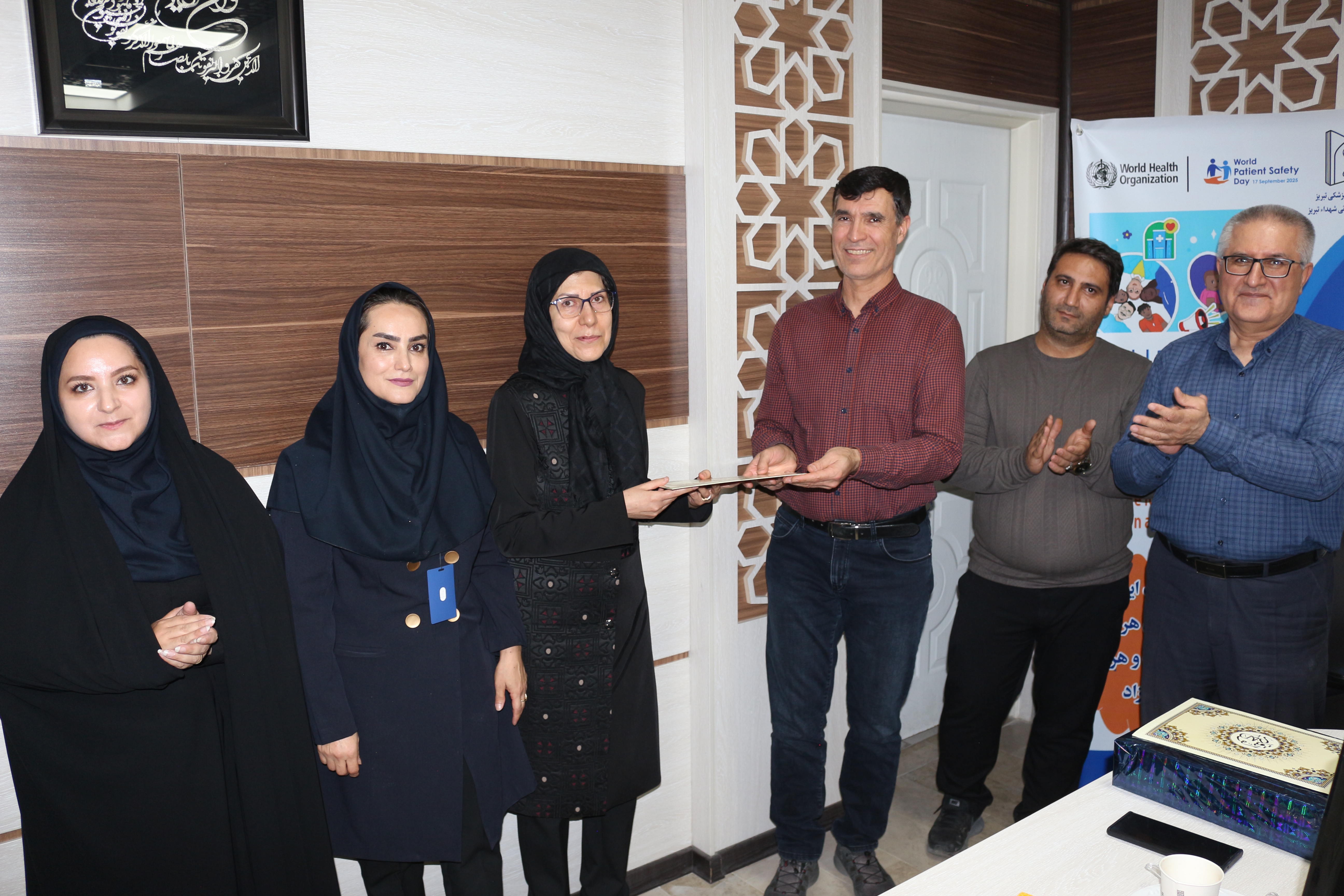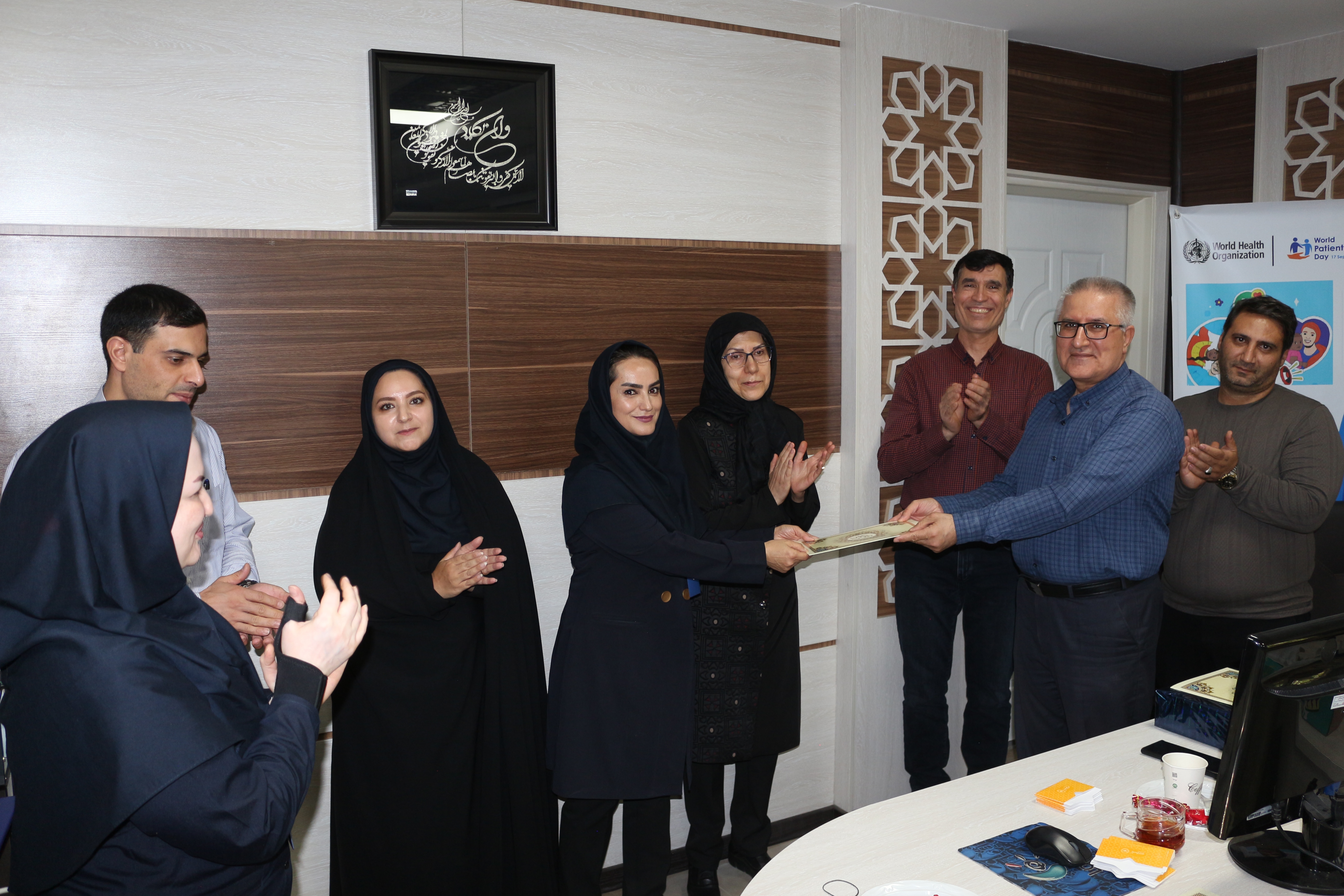 در ادامه این مراسم سرکارخانم ها خدیجه ندیم مسئول بهبود کیفیت و خانم جلوسیان کارشناس هماهنگ‌کننده ایمنی بیمار ، ضمن گرامیداشت این روز جهانی ، به تشریح شعار سال ۲۰۲۵ سازمان جهانی بهداشت و اهمیت ایمنی در مراقبت‌های درمانی پرداختند درنهایت اهداء لوح تقدیر و کارت هدیه به کارکنان فعال در این زمینه پایان بخش این مراسم بود.