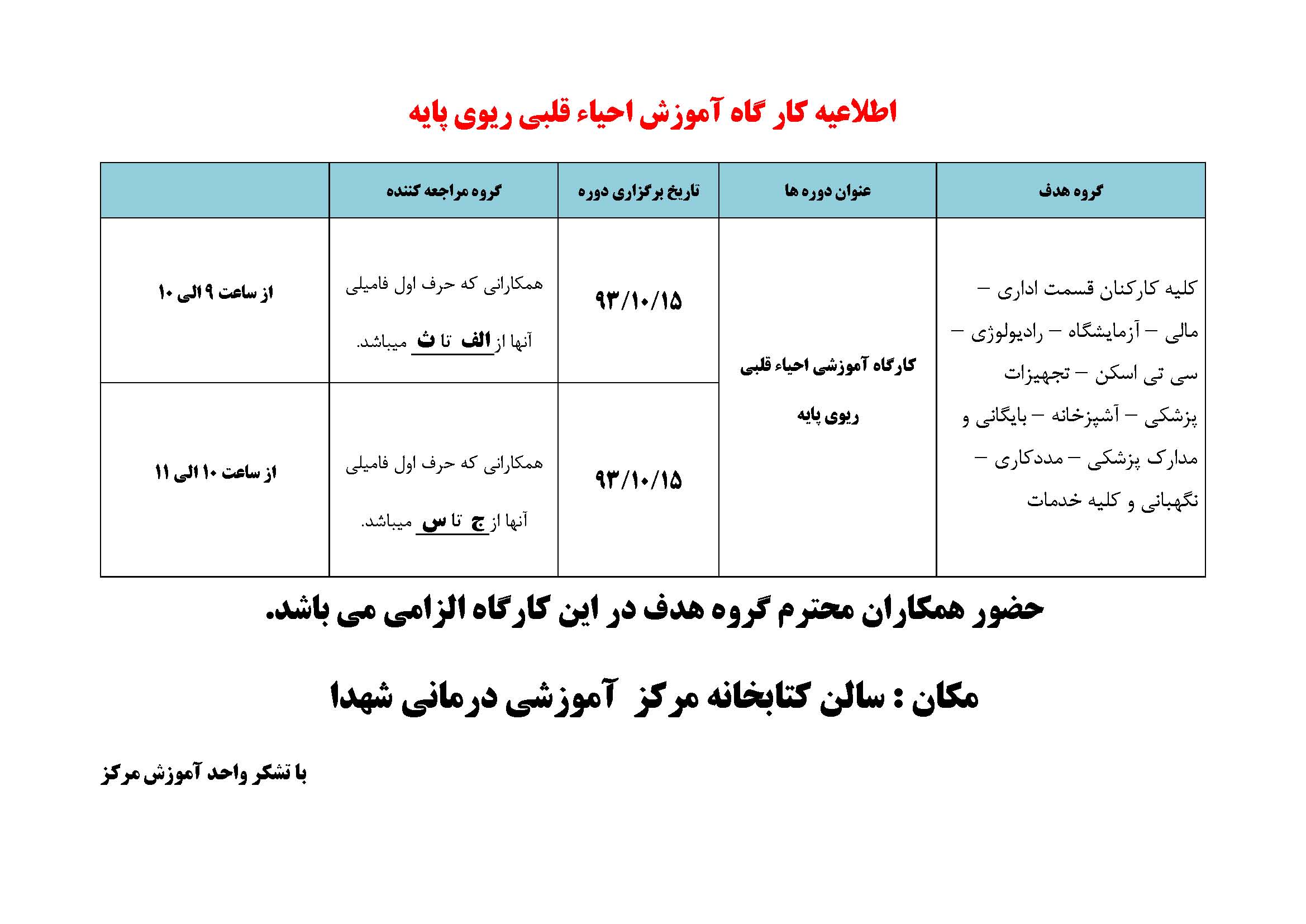 تاریخ انتشار : شنبه ۱۳ دی ۱۳۹۳ تعداد بازدید کنندگان خبر : 2107 زمان مطالعه : 1 دقیقه برگزاری کارگاه احیای قلبی ریوی پایه کد خبر : 73798 کپی ارسال نظر ثبت