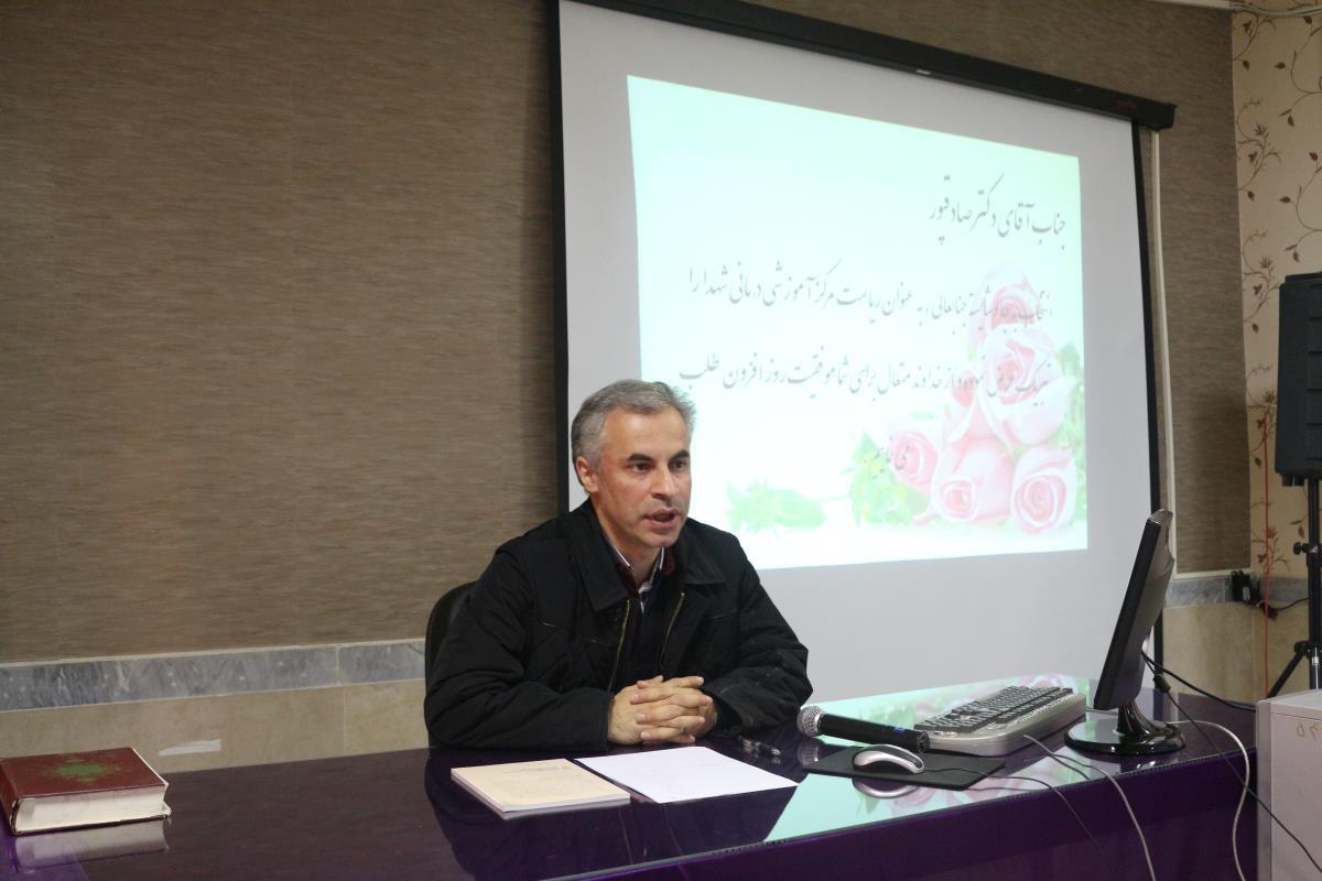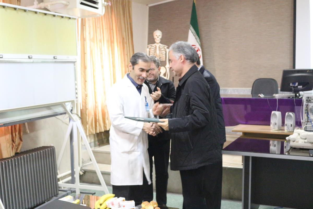 در ادامه آقای دکتر تقی زادیه معاون محترم درمان ، به نیابت از ریاست محترم دانشگاه علوم پزشکی تبریز ، ضمن تقدیر و تشکر از زحمات و خدمات آقای دکتر عیاسعلی درستی ، تبریک و آرزوی موفقیت برای آقای دکتر صادقپور ، از این مرکز به عنوان یکی از مراکز موفق در حوزه درمان یاد کردند و در خاتمه ضمن قرائت و تقدیم حکم انتصاب دکتر صادقپور و خواندن متن تقدیرنامه آقای دکتر درستی ، هدایایی به رسم یادبود، به ایشان تقدیم شد .
