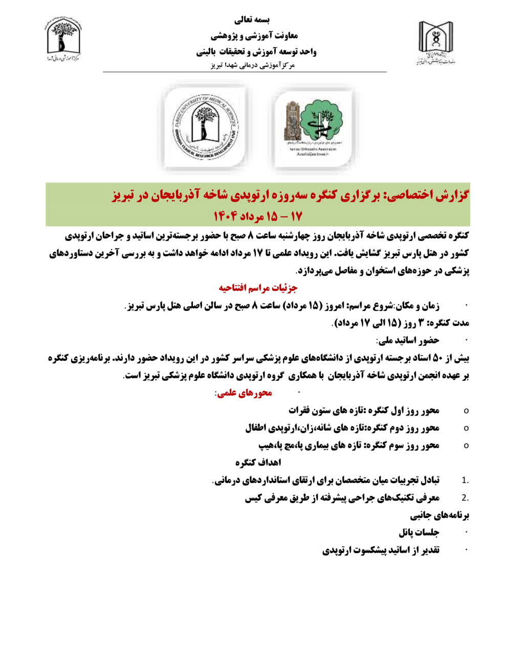 آغاز کنگره سه روزه ارتوپدی شاخه آذربایجان در تبریز 17-15 مرداد1404...