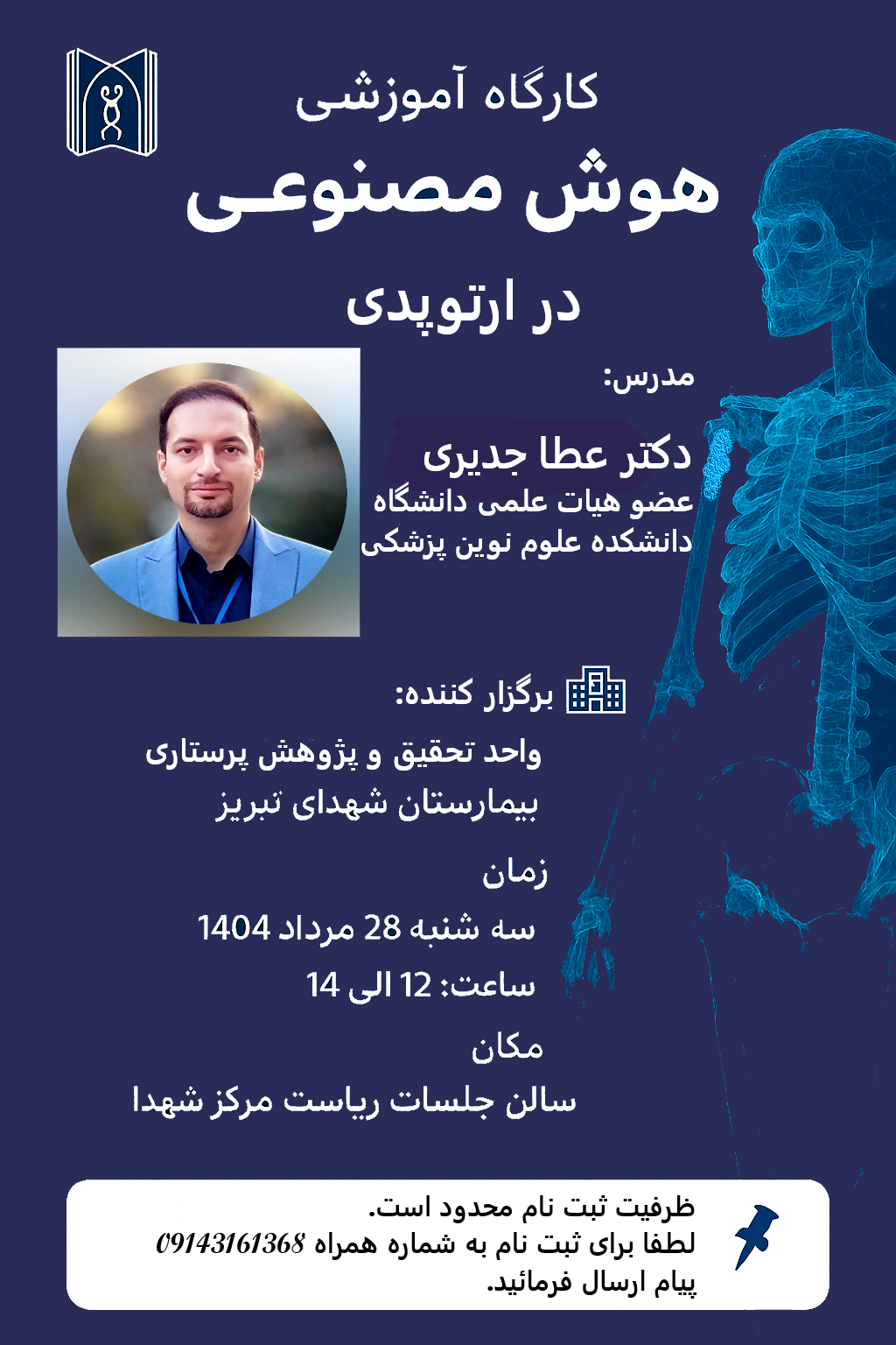 هوش مصنوعی در ارتوپدی کارگاه آموزشی هوش مصنوعی در ارتوپدی... کد خبر : 74250 کپی کلمات کلیدی : دانشگاه علوم پزشکی تبریز بیمارستان شهدا تبریز