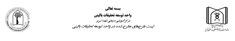 6 | 62582 | علیرضا روحانی | پیش بینی نیاز به جراحی در بیماران فروزن شولدر از طریق بررسی ھای فاکتورھای بیوشیمیایی و سرولوژیک | IR.TBZMED.REC.1398.990 |