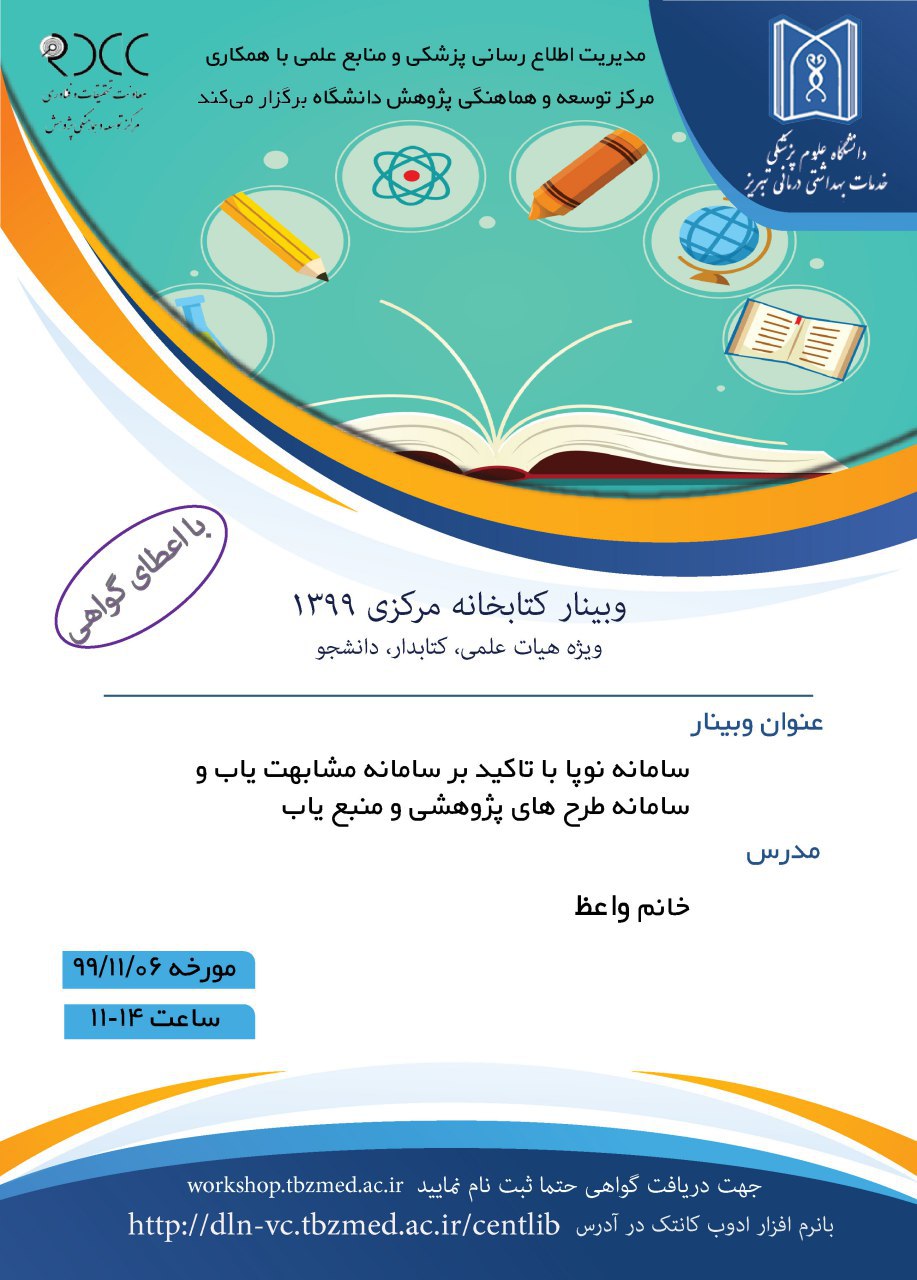 - وبینار کتابخانه مرکزی بهمن 1399 سامانه نوپا (لینک)